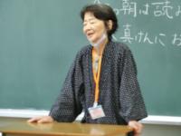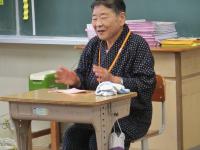 2023年7月3日 13時12分毎月1回程、PTA等の皆様のご協力により、朝の読み聞かせや昼の読み聞かせを行っていただいています。その中に、伊予弁で語る民話・昔話「お伽座」の皆さんがいらっしゃいます。先週も、伊予絣のユニフォーム姿で、子どもたちに優しく語りかけてくださいました。「読めん便りを読む話」「ふじつるのこぶ」「坊っちゃん列車のはじまり」…流暢な伊予弁が耳から入ってきます。耳で聞く語りは、想像力をかきたてます。