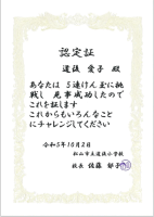 校長室では、今5連けん玉と逆立ちゴマが大人気。5の付く日は5連けん玉チャレンジデーにしようかなと考えています。認定証も作成しました。さて、成功するのはだれでしょう。楽しみです。
