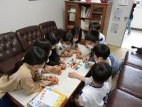 校長室には、いくつかのおもちゃが置いてあり、子どもたちはもちろん教職員も果敢にチャレンジしています。今はペットボトルの蓋で作ったキャップならべを持ち歩き、子どもたちと勝負をしています。先日は1年生にキャップならべを貸し出し、算数の学習で、「1から10のかずならべ」に挑戦しました。これからも、どんどん多くの子どもたちと、おもちゃを介して関わりたいと思います。