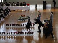 校長式辞の後、入学記念品が代表の1年生に手渡されました。