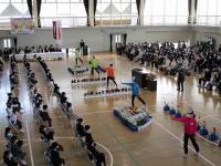 6年生が道後小学校のキャラクターに扮して、1年生を迎える言葉を発表しました。
