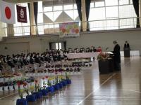 校長式辞の後、入学記念品が代表の1年生に手渡されました。