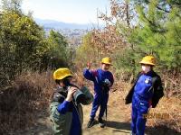 ところが、弘法大師像がある山道は急こう配で、しかも足元が落ち葉で滑りやすい悪条件です。思わず弱音を吐く子どもたちも続出しました。
