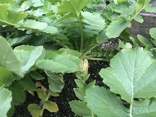 植える時期がおそかったせいか、どれも中くらいの大きさに育ちました。期待したカブも、そこそこの大きさでした。ざんねん。でも、今日は楽しい収穫です。