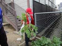 3月2日(木)の5校時、にこなかわくの畑で育ててきた、ダイコンとカブを収穫しました。