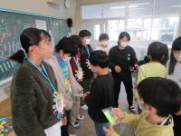今までの感謝の気持ちをこめて、みんなでゲームをした後、心を込めて作ったプレゼントを贈りました。6年生からはしおりのプレゼントをもらい、みんなでメッセージを読み合っていました。6年生には、残りわずかな道後小学校での生活を楽しんでほしいです。