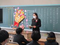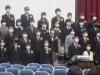 別れの言葉では、「校歌」「仰げば尊し」そして、6年生が卒業に向けて自分たちで作った歌「ずっと宝物」を合唱しました。マスク越しでしたが、とても力強い歌声でした。